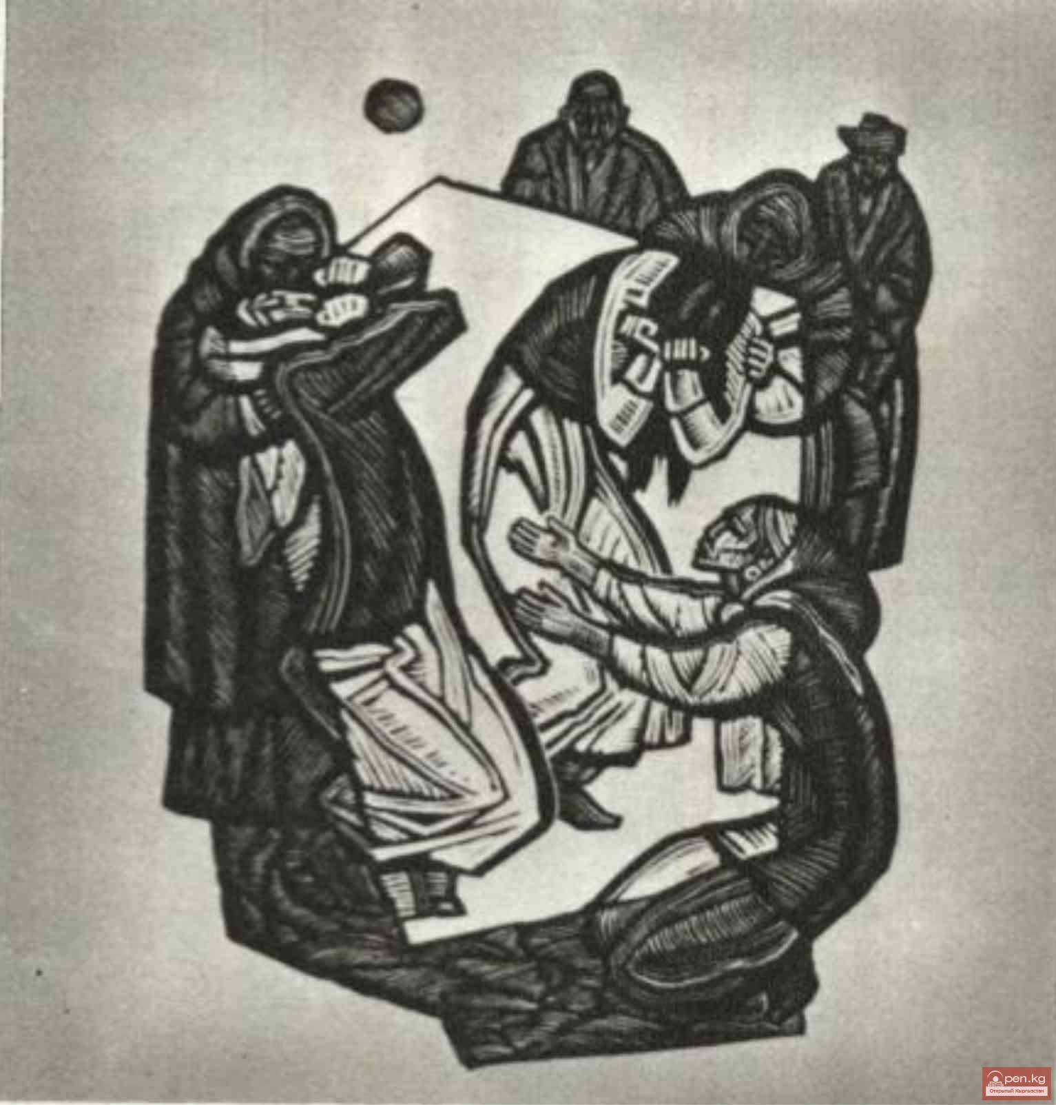 В технике линогравюры созданы основные станковые серии и десятки отдельных листов Лидии Александровны Ильиной, которые наряду с работами в книге выдвинули ее в число ведущих мастеров киргизской и советской графики, завоевавших признание в нашей стране и за рубежом. Мужественный, решительный язык линогравюры оказался наиболее адекватным характеру образного мышления этого свободно владеющего всеми эстампными техниками мастера, с чьим именем «связаны крупнейшие достижения советской графики монументальных форм, идейно активной, наполненной высоким гражданским чувством». Начало 60-х гг. ознаменовалось в творчестве Ильиной созданием подлинного шедевра киргизской и советской графики — линогравюры «Делегатки из Тянь-Шаня» (1960), которая по силе идейной накаленности образа и точно найденному решению художественной формы, подобно картине «Дочь Советской Киргизии», стала не только символом обновленной Киргизии и раскрепощенной женщины Советского Востока, но и художественным олицетворением социалистической формации, торжества народовластия, советского образа жизни. Здесь создан образ яркий, впечатляющий. Образ обогащается сочетанием суровой пластики силуэта с деталями, подчеркивающими женственность героини — мягко выявленные черты прекрасного лица, плавный абрис непокрытой головы с гладкой прической, изящно брошенный на плечи платок и трогательные сережки в ушах. Вслед за этой гравюрой, показанной во многих странах мира, и серией литографий «Черные годы» (1962), где в подробном сюжетном повествовании показан полный драматизма и печали образ народной жизни феодально-колониального прошлого, а также цикла «По Киргизии» (1963), воспевающего сегодняшний день республики, последовали известные серии линогравюр «Женщины мира» (1965), «Молодежь Киргизии» (1966, р «Материнство» (1967), за которые Л. А. Ильиной была присуждена Государственная премия СССР. В этих работах она выступает мастером крупного художественного обобщения, художником, способным выражать сущностные стороны явлений в сочетании с тем неповторимо индивидуальным ощущением конкретной жизни, без которого нет искусства. Здесь проявилось и ее зрелое мастерство — владение рисунком, композицией, выразительными возможностями графического материала, гибко и точно использованными для выражения образного замысла. В серии «Женщины мира», призывно-публицистической по содержанию, графическая форма обладает почти плакатной выразительностью. Интернациональным пафосом особо впечатляют гравюра «Не сметь!» с фигурой восточной женщины на трибуне и остро скомпонованный, светлый по настроению лист «Если бы матери всей земли...»