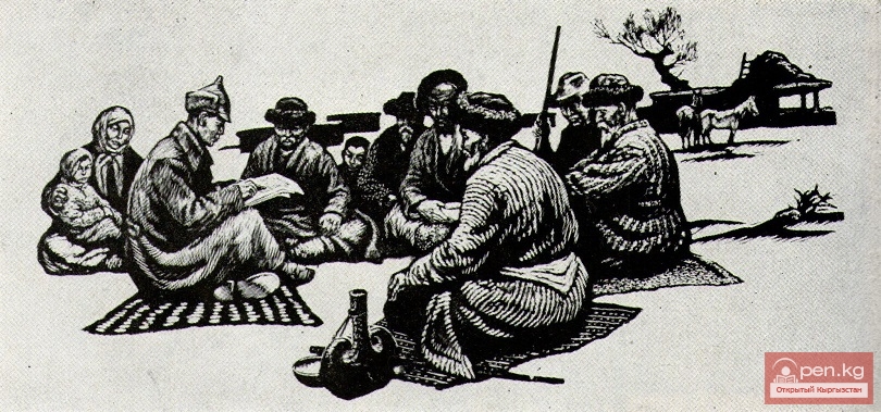 Новые тенденции в эстампной графике Киргизии связаны с творчеством художников, пришедших в искусство республики на рубеже 50— 60-х гг. и в 70-е годы. Это А. Осташев, М. Оморкулов, В. Гладков, Р. Нудель, А. Турумбеков, Е. Кузовкин, А. Шубин, А. Мисюрев, Б. Джумабаев, И. Бульба, В. Максимов, М. Ахмедов, Б. Кошоев, многие из которых сложились как своеобразные мастера. Заметный вклад в развитие киргизского эстампа внес Аркадий Сергеевич Осташев — художник глубоко реалистического плана, обладающий четко выраженным интересом к социально-психологической проблематике искусства. На все творчество Осташева оказало влияние искусство его учителя А. Ф. Пахомова, сказавшееся прежде всего в его уважительном отношении к натурной работе, интерес к внутреннему миру человека, а также к классическим традициям реалистического искусства. Остротой наблюдений сложных мотивов, сочностью и разнообразием резьбы отмечены серия линогравюр «Базар» (1961) и примыкающие к ней по жанровому характеру трактовки темы гравюры «Папа-студент» (1961), «Перед экзаменом» (1962), «Улан идет» (1962), «На остановке» (1984). Интерес к жанровым мотивам, умение подметить характерное у Осташева сочетается со склонностью к темам большого социального плана, дающих возможность размышлять о прошлом и настоящем. Как и Л. Ильина, Осташев глубоко воспринял идеи, выдвинутые в творчестве Ч. Айтматова, испытал глубокое эмоциональное воздействие созданных им образов. Под впечатлением повести «Первый учитель» возник триптих «30-е годы». Особую популярность получил центральный лист «Ликбез» отмеченный высокой оценкой критики: «Образы всех персонажей жизненно достоверны и типизированы. Такие детали композиции, как одежда, позы, пейзаж, натюрморт, изображены с этнографической точностью, которая, однако, не перешла в самоцель. Этот лист решался как монументальное произведение. Внешняя статичность человеческой группы сочетается с внутренней психологической насыщенностью каждого персонажа, тщательная обдуманность компоновки, широкий штрих, четкость силуэтов, психологизм и портретность человеческих образов — все это свидетельствует о зрелом мастерстве художника». В конце 60-х гг. Осташев создал в этой же технике два других триптиха— «40-е годы» (1968) и «20-е годы» (1969), воплотившие его размышления о становлении Советской власти в Киргизии и Великой Отечественной войне. В них использован обширный документальный и литературный материал. В цикле «По Ошу» (1965—1968) Осташев передал своеобразный облик и колорит старинного азиатского города 60-х гг., где в ту пору контрастно сочетались старое и новое. Гравюры серии «В старом Оше», «Ош строится», «Ошский базар», «Мечеть в Оше», «В школу», где трансформировались в композиции первоначальные натурные зарисовки, привлекательны достоверностью изображения самых разнообразных жанровых, архитектурных и пейзажных мотивов — людей в восточных одеждах, осликов, дувалов, глинобитных домиков, восточного базара, современных зданий, автомобилей, подъемных кранов... Во всем — нарастающий ритм неизбежного обновления жизни. Осташева, как отмечают исследователи, «привлекает творческое начало в человеческой личности — активность, действенность человеческой мысли». Это качество обусловило интерес художника к жанру портрета. В галерее эстампных портретных композиций 60-х гг. им соз