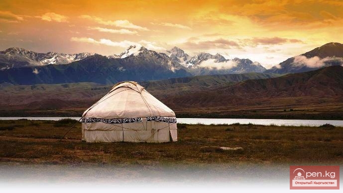 Господствующим типом жилища в условиях многовекового кочевого быта киргизов являлась юрта. Даже возводя надмогильные сооружения — гумбезы,— киргизы нередко придавали им форму юрты, чтобы душа и тело покойного чувствовали себя уютно и в «загробном мире». В юрте проходила вся жизнь скотовода, начиная с рождения. В ней зимовал он даже в самые лютые морозы, с ней кочевал по обширным пастбищам.