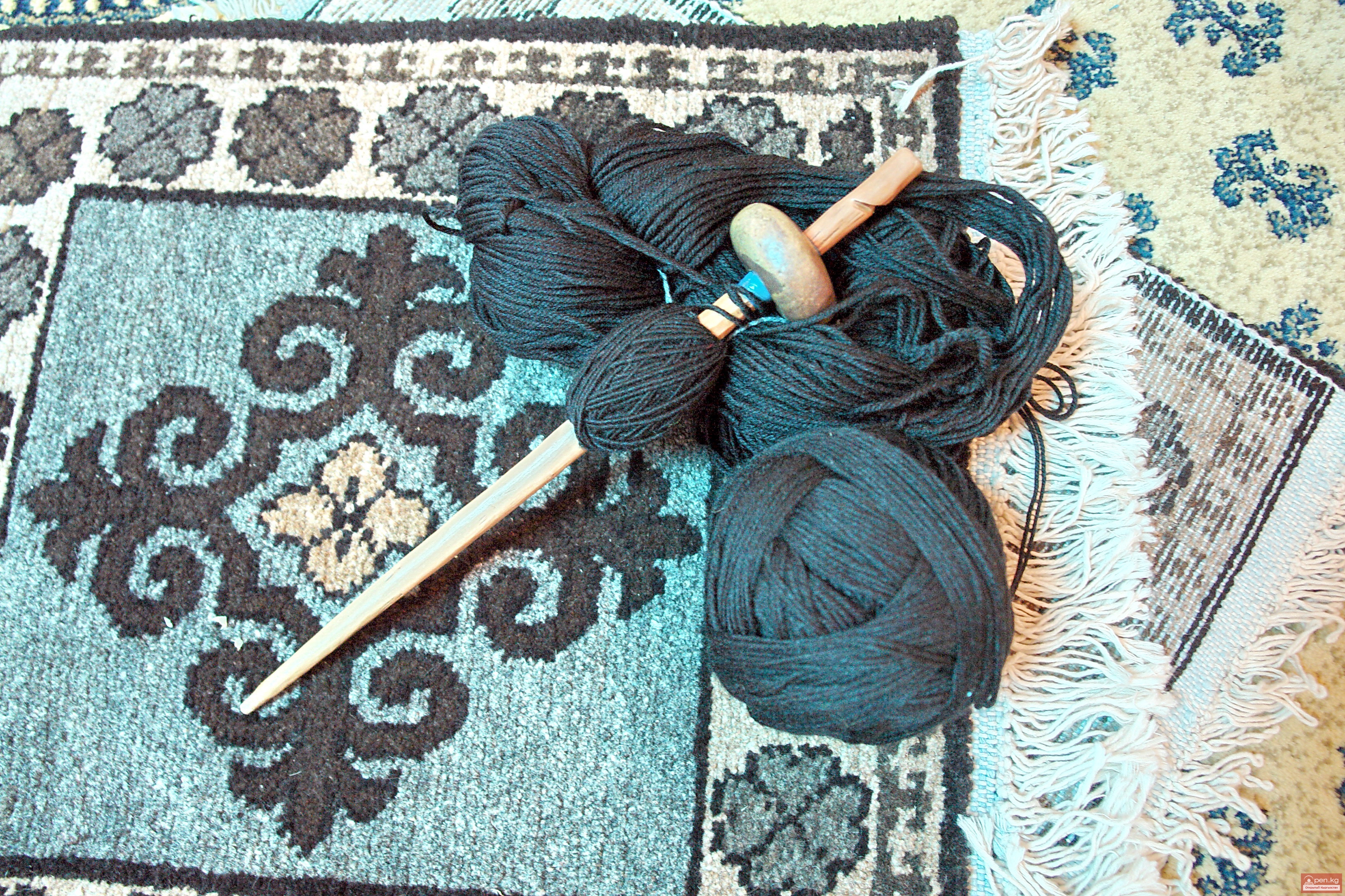 Из предметов, имеющих отношение к верховому и вьючному транспорту, широкое распространение имели ворсовые подпруги (басмайыл), подстилки на седло— копчук (размером 35X40 см), переметные сумы (куржун). Вырабатывали специальные ковровые чехлы для закрывания во время перекочевки концов купольных жердей и звеньев решетчатого остова юрты. Таким образом, в XIX в. ковровые изделия у южных киргизов глубоко проникали в быт.