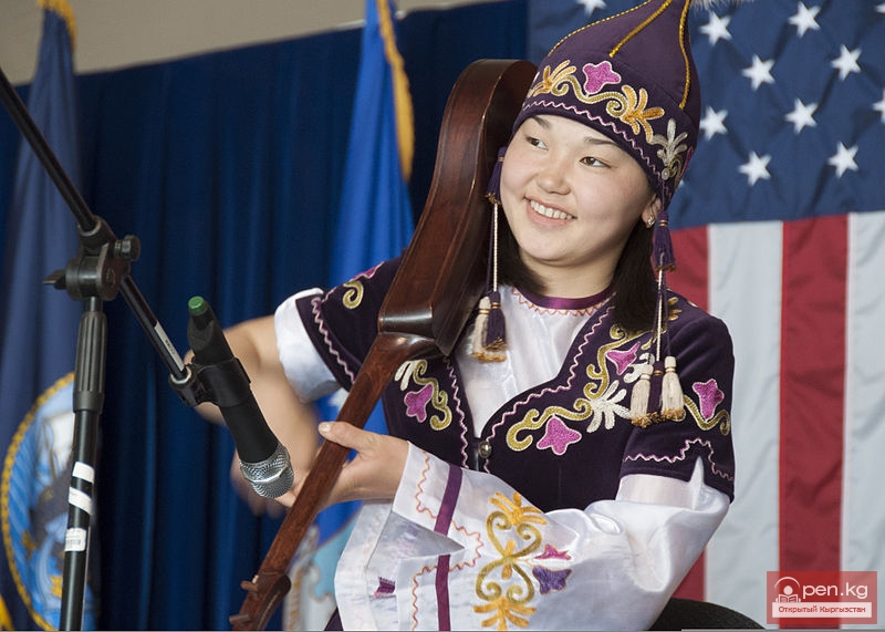 Чтобы добиться преимущества в музыкально-поэтической импровизации, в исполнении участвуют наиболее способные юноши и девушки. Важное место принадлежит комедийному артистическому дарованию певцов. Некоторые, особо одаренные исполнители создают на основе песни вокально-сценическую композицию. Такой вид приобрели пьесы- сценки известных народных певцов и артистов Нарынского областного музыкально-драматического театра С. Андабекова и К. Карасартовой. Приведенная в Приложении их популярная шуточная песня-диалог «Старик и старуха» («Чал-кемпир», или «Карылардын дуэти», пример 24) — оригинальный образец жанра «кыз-жигит». Своеобразие его, в частности, в том, что исполнение включает танец.