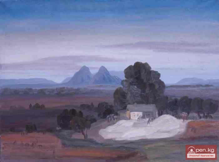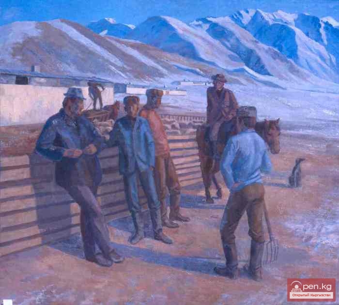 Наибольшей композиционной законченностью отличается тематическая картина «На учебу» (1981). В ней художник изобразил далекое предвоенное время в киргизском аиле, пробуждение интереса трудящихся масс к образованию.