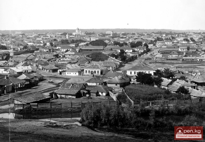 В 1897 г. в городе проживало 6115 человек. Среди них: русских, украинцев и белорусов - 2870, узбеков - 1215, киргизов - 666, татар - 271; жителей других национальностей - 97 человек. По сведениям пишпекского городского старосты И. Ф. Терентьева, в городе было 752 дома, в том числе: "...из сырцового кирпича и глинобитных под камышовой крышей - 728, деревянных, под железной крышей - 7, каменных, под железной крышей -6".