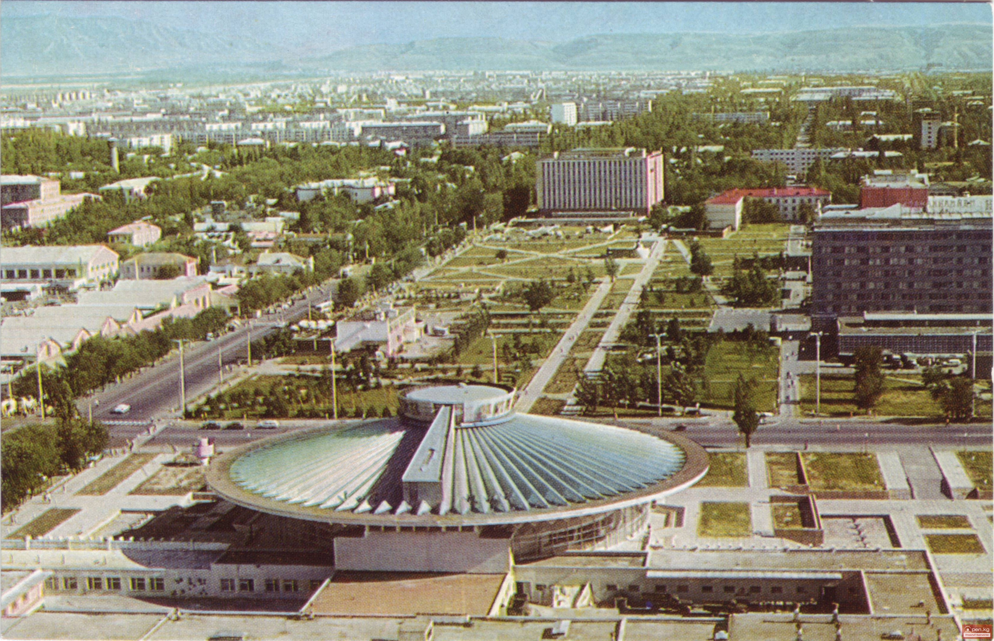В начале 60-х годов все убогие строения, глинобитные мазанки в том районе были снесены. Была проделана огромная работа по реконструкции улицы, асфальтирована ее проезжая часть. От улицы Фрунзе до универмага "Ай-Чурек" на правой стороне раскинулся сквер, в котором произрастает более тридцати пород деревьев и кустарников. Здесь ель и сосна, береза и дуб, ясень и каштан, вяз и карагач. Высажен большой набор пород и видов древесных кустарников. Много цветов. В центре сквера - широкая аллея с плиточным покрытием, протянувшаяся от ЦУМа, до ул. Фрунзе. Здание цирка, гостиница "Кыргызстан" с фонтаном, театр оперы и балета, и чайхана создали вместе со сквером, прекрасный уголок нового города на старой улице.