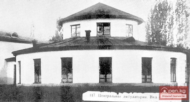 В 1940 г. было возведено трехэтажное здание зубоврачебной школы, впоследствии одна из кафедр Киргизского медицинского института (Архитектор Г. X. Саакян). В этом же здании с 1940-1966 гг. работал основатель кафедры патологической анатомии института, заслуженный деятель науки Киргизской ССР, профессор Борис Федорович Малышев, о чем сообщает мемориальная доска на здании. В годы Отечественной войны здесь же работал институт биохимии Академии наук СССР во главе е академиком А. Н. Бахом.