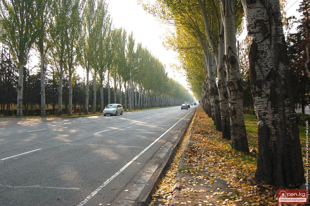 В послевоенные годы начались огромные перемены и судьбе этой многокилометровой дороги. Год от года менялся ее облик: дорога превращалась в улицу. В 1953 г. она получила имя Ново-Белинской, а в июле 1960 г. переименовывается в проспект Мира. Он тянется от железнодорожного переезда, вошедшего в строй в 1972 г., до Аэропорта, закрытого в 1980 г. в связи с вводом нового аэропорта "Манас".