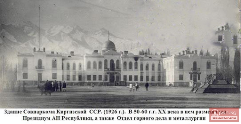 В этом здании Центральный Исполнительный Комитет и Совнарком Киргизской АССР работали до ноября 1936 г. После перехода правительства в новые помещения, в здании ЦИК размещались различные правительственные учреждения, в том числе (с 1943 г.) Киргизский филиал АН СССР и АН Киргизской ССР.