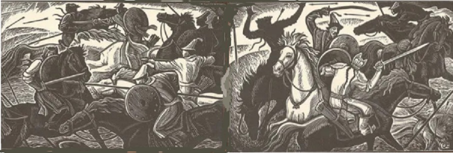 Тогда, взяв в руки пику, Кульчоро с боевым кличем в честь Манаса погнался за ним.