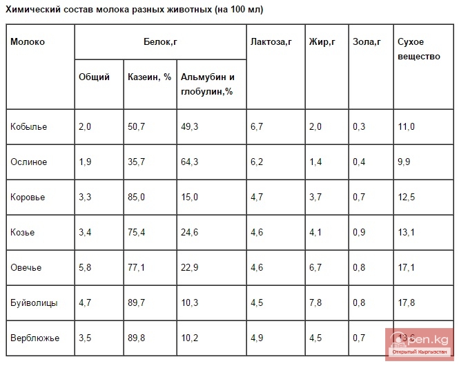 Высокие питательные, лечебные свойства кымыза можно объяснить, прежде всего, составом кобыльего молока, которое исользуется для его приготовления.