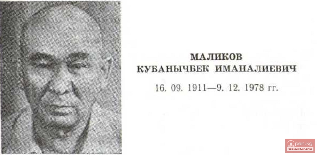 Поэт, драматург К. Маликов родился в с. Уч-Эмчек нынешнего Аламединского района Киргизской ССР в семье крестьянина-бедняка. В 1926г. окончил сельскую начальную школу, в 1931 г. — Киргизский педтехникум во Фрунзе. Трудовую биографию начал в 1926 г. корреспондентом газеты «Эркин-Тоо» по Фрунзенской области. В 1931 г. работал зав. отделом в редакции газеты «Кызыл Кыргызстан», а с 1934 по 1935 г. являлся ответственным секретарем этой газеты. С 1932 по 1933 г. был зам. редактора газеты «Ленинчил жаш», с 1935 по 1937 г. — зав. отделом в Киргосиздате, с 1944 по 1946 г. — главным редактором журнала «Советтик Кыргызстан». С 1937 по 1942 г. К. Маликов являлся секретарем, с 1947 по 1949 г.— зам. председателя, с 1954 по 1959 г.— ответственным секретарем, а с 1959 по 1973 г.—литконсультантом правления СП Киргизии. В 1942 г. работал комиссаром рабочей колонны на строительстве Ворошиловской ГЭС, с 1943 по 1944 г.— зав. литчастью, с 1951 по 1953 г. — директором Киргизского драмтеатра. Печатался с 1928 г. Его первое стихотворение «Весенняя пахота» было опубликовано в 1928 г, в газете «Эркин-Тоо». В 1931 г. вышла отдельной книгой его пьеса «Тендик курманы» («Смерть за равенство»). К- Маликов является одним из зачинателей киргизской советской профессиональной литературы. В 30-е гг. он трудился в основном в жанре прозы и поэзии. В эти годы он создал рассказы «Красный Алай» (1934 г.), «Счастливая девушка» (1935 г.), «Желтый козленок» (1935 г.) и др., поэмы «Жапар и Шарипа», «Жертвы напыщенности» и др. Изданы сборники стихотворений «Стихотво¬рения Кубанычбека» (1938 г.), «Избранные стихи» (1938 г.), «Новые стихи» (1939 г.) и др. В 1935 г. К- Маликов создает цикл стихотворений «Театрдык ырлар» («Стихи для театра»), которым внес значительный вклад в создание и формирование киргизской эстрады. Для поэтического творчества К. Маликова 40—50-х гг. характерна эпическая масштабность. Издаются поэтические сборники «Кровь за кровь» (1942 г.), «На берегу Чуйского канала» (1942 г.), «Дружба и любовь» (1949 г.), «Наша земля» (1950 г.), «Кадыр аке» (1952 г.), «Огни в горах» (1957 г.) и др. Писатель внес значительный вклад в развитие национальной драматургии и театра. В 50-е гг. им создана пьеса «Мы не те, что были...» в соавторстве с А. Куттубаевым, в которой отражено влияние коллективизации на психологию и сознание простого народа. В 1950 г. издается сборник пьес «Биздин жер» («Наша земля»). Большой успех принесли пьесы «На высоте» (1936—1958 гг.), «Кружащий горный орел» (1964—1965 гг.), «Девушки одной улицы» (1960 г.), «Осмонкул» (1969 г.). В 1964 г. изданы мемуары «Менин замандаштарым жана каламдаштарым» («Мои современники и собратья по перу»), в 1977 г. заново переработана повесть «Азаматтар» («Молодцы»), К Маликов принимал активное участие в изучении и издании эпоса «Манас». Совместно с А. Токомбаевым много лет работал над сводным трехтомным вариантом этого эпоса. Этот вариант переведен на казахский, таджикский и узбекский языки. Он является одним из переводчиков на киргизский язык партийного Гимна «Интернационал», соавтором Государственного Гимна Киргизской ССР. Им переведены также некоторые произведения А. С. Пушкина, М. Ю. Лермонтова, В. В. Маяковского, Т. Г. Шевченко, С. Стальского и др. В 1978 г. за пьесу «На высокой земле» К. Маликов удостоен Государственной премии Киргизской ССР им. Токтогула Сатылганова. Народный поэт Киргизии (1969 г.). Член КПСС с 1940 г., член СП СССР с 1934 г. Награжден орденом Ленина, Трудового Кр