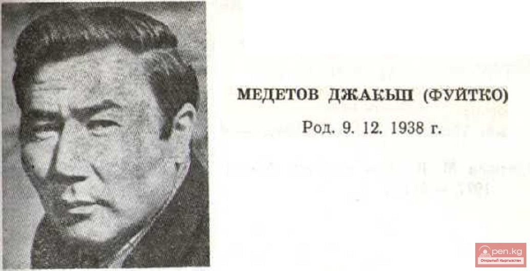 Прозаик Дж. Медетов родился в с. Терек Таласского района Таласской области в семье колхозника. В 1958 г. окончил Аральскую СШ, в 1963г. — филологический факультет КГУ.