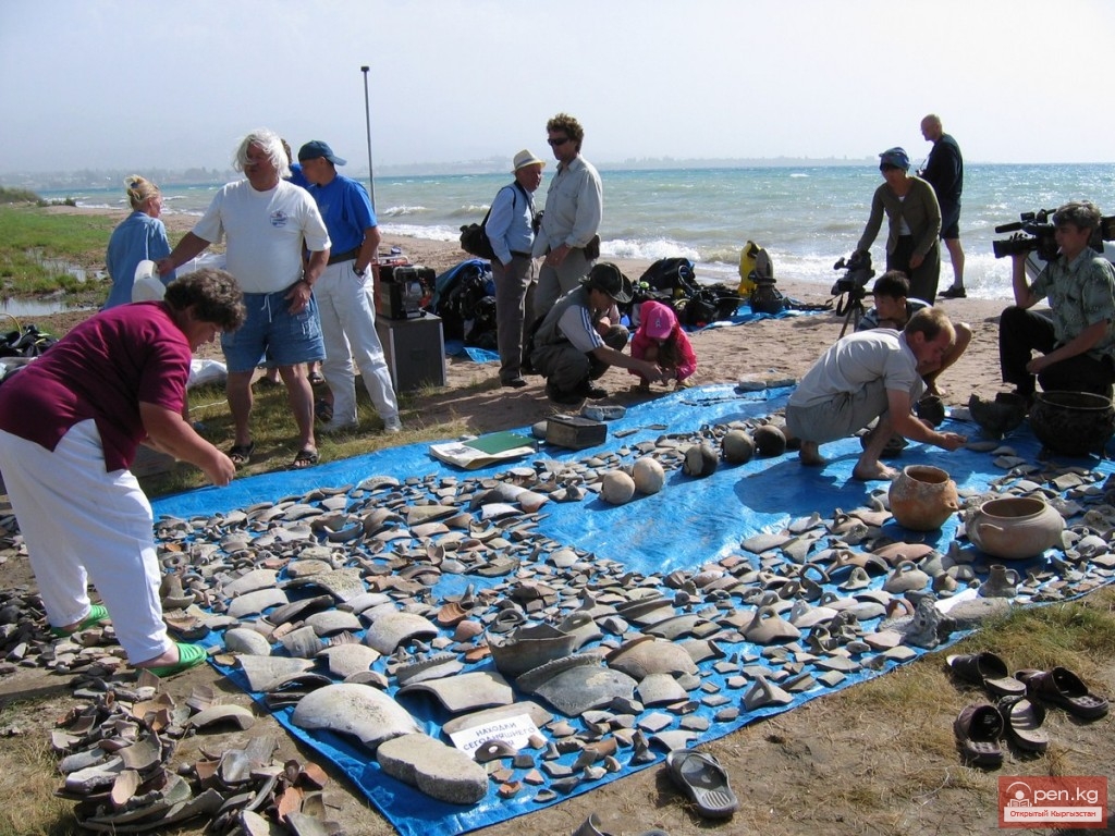 Еще в середине прошлого века ученые обнаружили на дне Иссык- Куля затонувшие поселения. Волнами выбрасывало на берег всевозможную утварь, человеческие кости, обожженные кирпичи, черепки глиняной посуды, монеты. А позднее и на суше были обнаружены разнообразные археологические памятники — развалины древних поселений, каменные изваяния («каменные бабы»), курганы, наскальные изображения, бронзовые изделия.