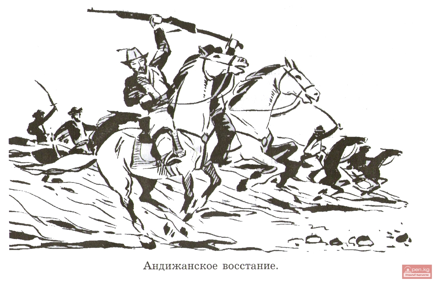 Рост освободительного движения и его итоги. Волнения начались в июле 1916 года в городе Ходженте и распространились на всю территорию Туркестана. Наиболее сильные выступления против царского произвола происходили в Пишпекском и Пржевальском уездах Семиреченской области. 7 августа восстало население Пишпекского уезда, 9 августа к ним присоединились жители горных районов: Суусамыра, Кочкора, Джумгала, Нарына. 10—12 августа волнения охватили население При иссыккулья. Ожесточенные столкновения повстанцев с войсками царя продолжались с августа по октябрь.