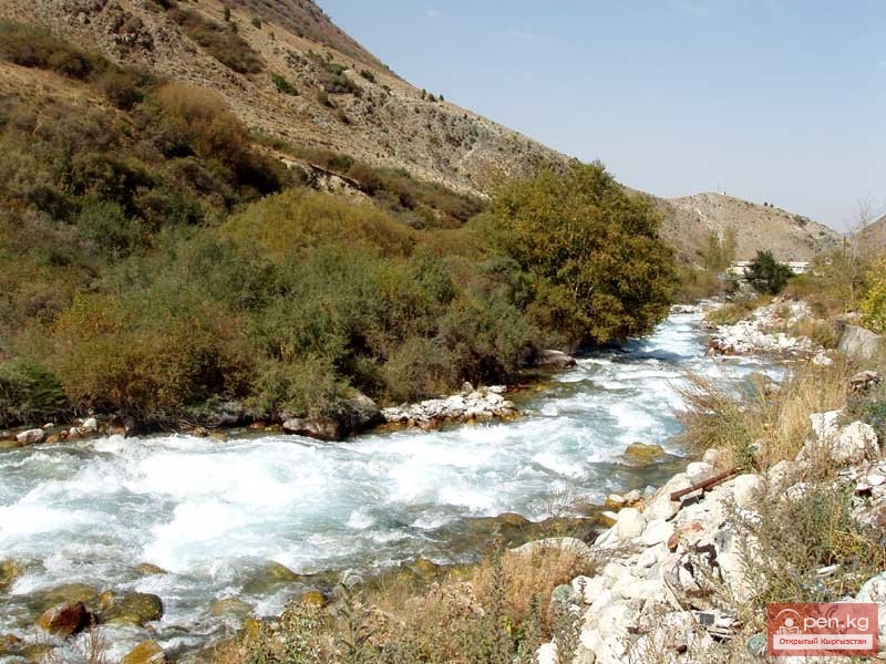 Река извивается между камнями. Водный поток вздымается мириадами прохладных брызг на крутых порогах. В верхнем течении реку окружает хаотическое нагромождение диких разноцветных скал, то гладких, то ноздреватых, покрытых красными лишайниками. Горная тропа, преодолев три затяжных подъема, выводит на широкий гребень, а затем по снежнику поднимается к перевалу Иссык-Ата.