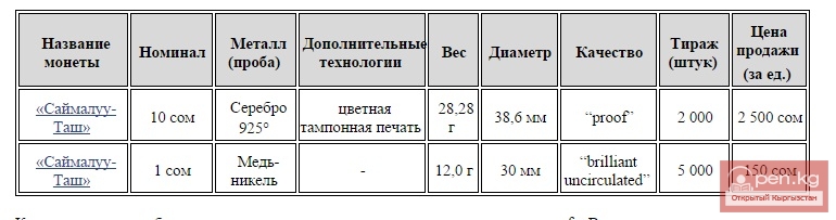 Рыночная стоимость самой дорогой монеты составляет почти 65 тысяч сомов......