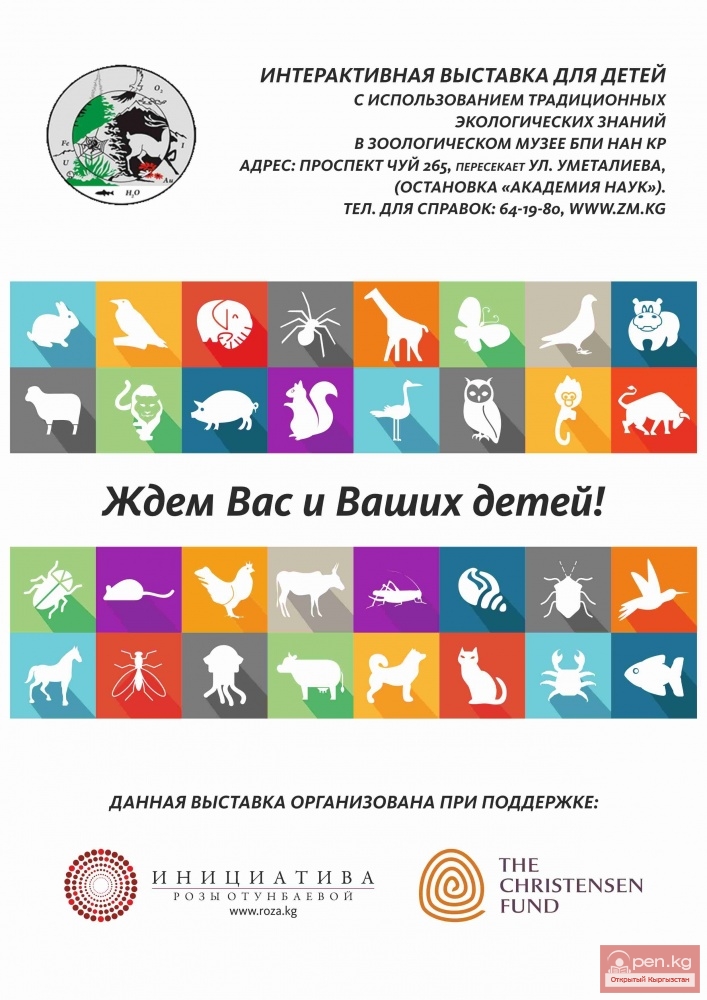 На выставке дети смогут окунуться в удивительный мир животных Кыргызстана, увидеть выставку детских рисунков, предоставленных детскими центрами "Балажан" и "Кыргызстан балдары", а также поучаствовать в мастер-классах по традиционным экологическим знаниям кыргызского народа.