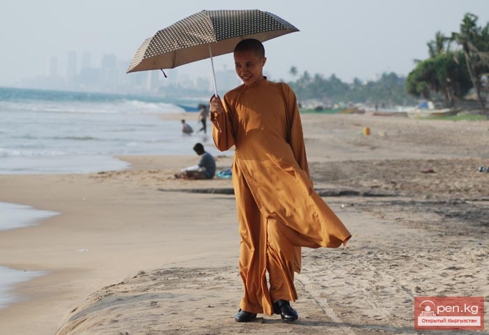 Непривычно выглядит и пестрая толпа — мужчины-сингалы в саронгах (длинный кусок ткани, обернутый вокруг пояса наподобие юбки) и мусульманки в шароварах; девушка в короткой модной юбке и рядом женщина, закутанная в спускающееся до земли сари. Чопорный англичанин, не расстающийся даже в полуденную жару с крахмальной сорочкой и галстуком, шествует рядом с бритоголовым буддийским монахом в оранжевом одеянии, сандалиях и с непременным черным зонтиком в руке (местные жители считают, что от солнечных лучей спасает зонт только черного цвета); здесь же встретишь мавра в красной феске, черном жилете и белых брюках и католическую монашку в причудливом черном капюшоне с четками в руках.