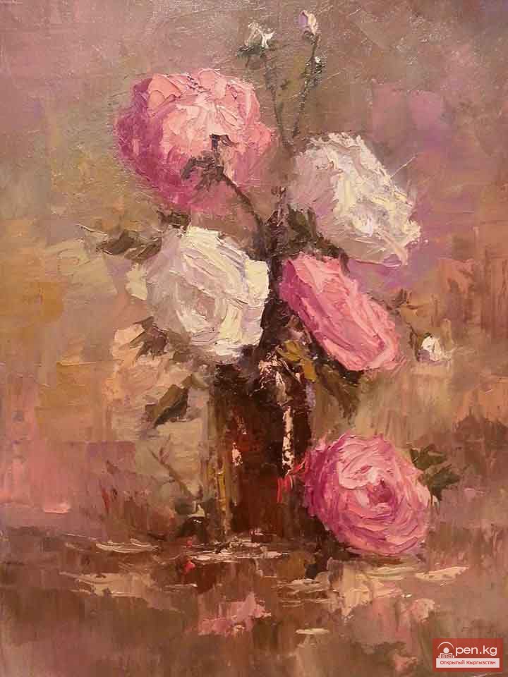 - Абсолютный натурализм. До недавнего времени это была просто наработка мастерства и понимание того, что такое живопись. Знаете, во время учебы в училище и академии я ничего для себя не извлек. Хотя всегда получал высокие оценки за свои дипломные работы. Я просто поддерживал свое умение рисовать и обращаться с красками во время процесса учебы. Азы живописи я начал изучать только в аспирантуре, хотя определенные навыки уже были. Прошло несколько лет, я перестал мыслить как студент и у меня появились творческие взгляды. Мне надоело заниматься тем, чем я занимался раньше. Есть желание поискать себя и в других жанрах, возможно, это натура – портреты, модели. Но это не будет так выглядеть натуралистично, теперь необходимо научиться выражать свой взгляд в живописи. Я принимал участие в различных республиканских выставках, на данный момент мне хотелось бы накопить определенное количество работ и открыть свою персональную выставку – это будет новый этап в моем творчестве. На данный момент я также занимаюсь преподавательской деятельностью и обучаю студентов тому, что умею сам. Я с удовольствием провожу время на этой работе. Я очень хочу себя реализовать и в музыке и в живописи. Теперь я дома в Кыргызстане, мне очень комфортно и я начинаю творить.