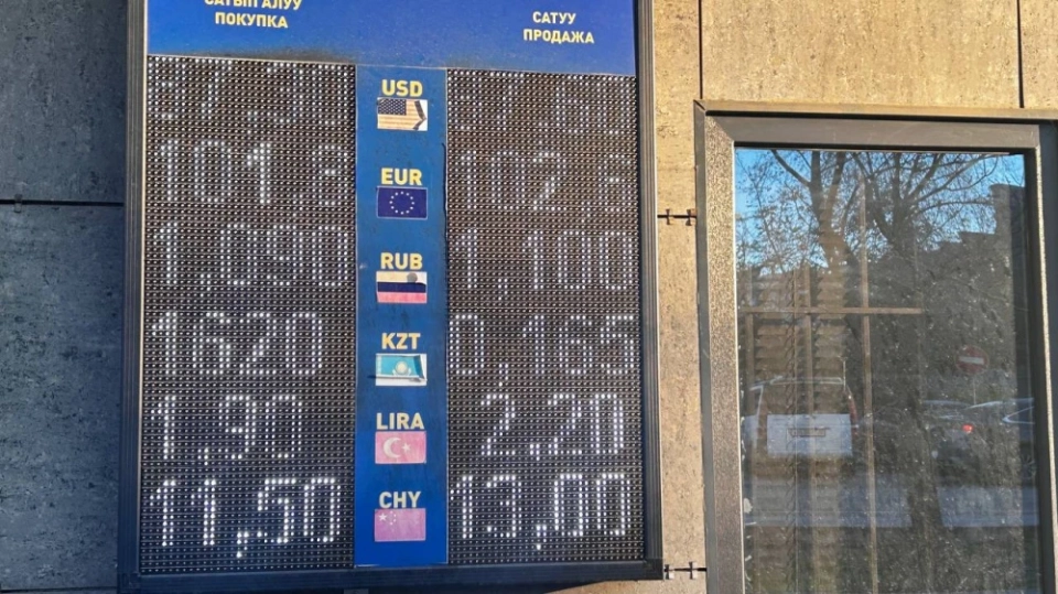 Евро показал рост в цене: его покупают по 101,0-101,8 сома, а продают по 101,8-102,6 сома.