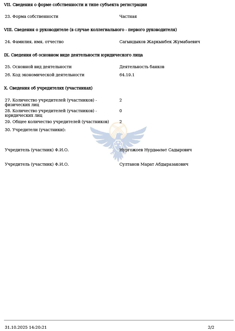 Правление национального регулятора дало согласие на его создание 10 октября 2025 года. По данным Министерства юстиции, регистрация банка состоялась 20 октября, и он не имеет иностранного участия.