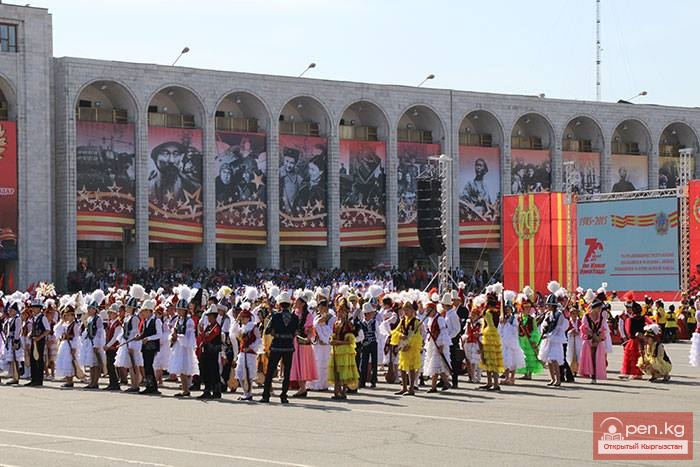 В Бишкеке стартовали торжества, посвящённые 70-летию Победы над фашизмом в Великой Отечественной войне. В воскресенье, 3 мая, в столице состоялся памятный велопробег, организованный мэрией Бишкека, в котором приняли участие около 1000 любителей велоспорта. А в понедельник, 4 мая, в центре города состоялся Парад молодых наследников Великой Победы. В нём приняли участие шесть тысяч ребят из бишкекских школ и военных лицеев, детских творческих и спортивных коллективов.