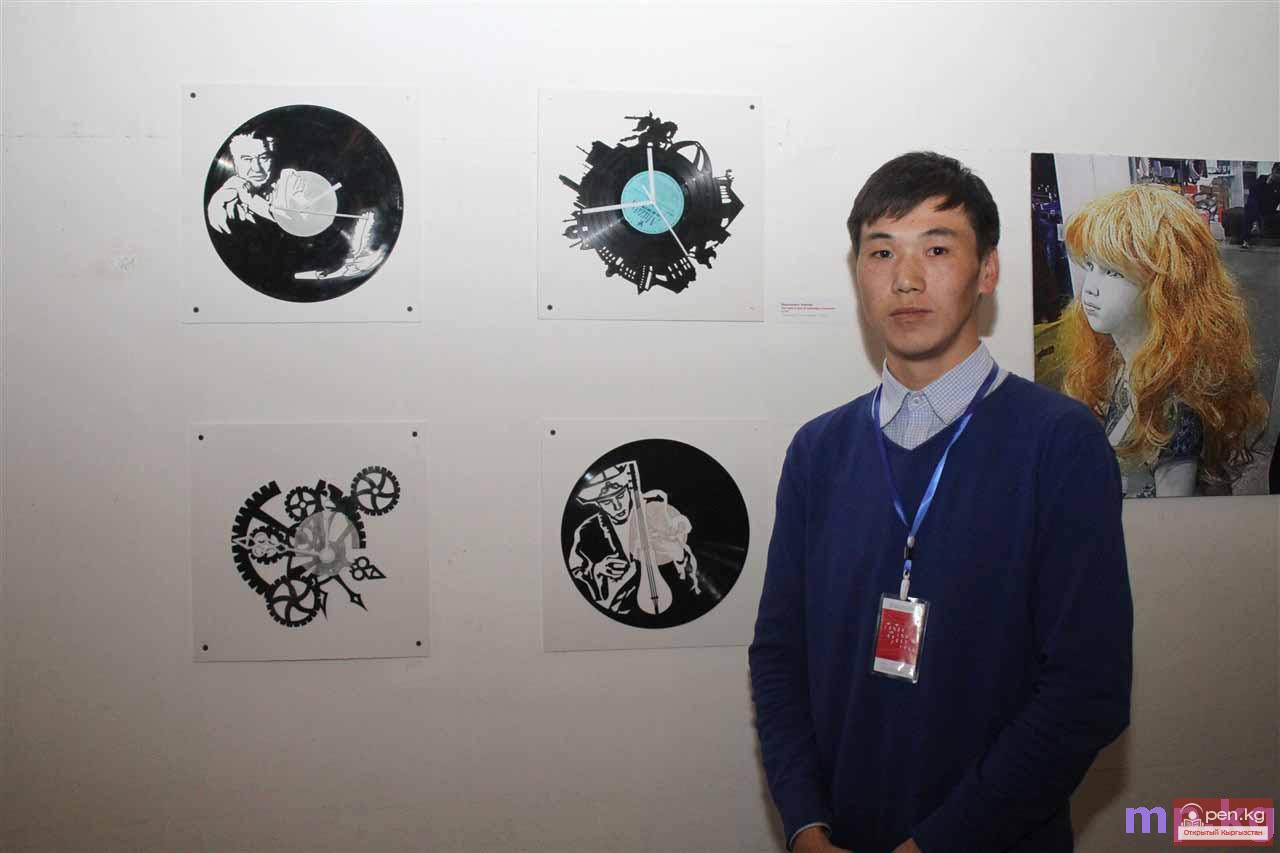 Удивили гостей выставки и часы из обычных виниловых пластинок. Автор Толонбай Абдыкадыров увидел технику изготовления работ из интернета и добавил в них местный колорит.