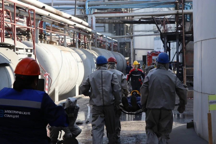 В ходе первого сценария участники отработали действия по ликвидации возгорания, эвакуации персонала и обеспечению первой медицинской помощи пострадавшим.