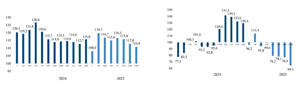 Среди отраслей, способствующих росту промышленного производства, стоит отметить: фармацевтику (увеличение в 2,3 раза), производство пищевых продуктов (включая напитки), где увеличение составило 40,1%, а также резино- и пластмассовые изделия и строительные материалы (31,8%). Также наблюдается рост в производстве деревянных и бумажных изделий (28,7%), химической продукции (17,7%), текстиля и одежды (8,5%), а также в добыче полезных ископаемых (16,3%).
