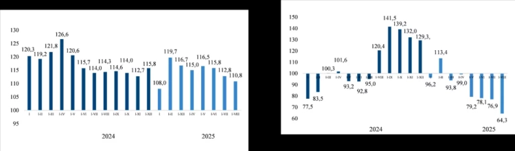 Объем внешней и взаимной торговли Кыргызстана с товарами в период с января по август 2025 года составил 9 848,1 миллиона долларов США, что на 9,1% меньше по сравнению с аналогичным периодом 2024 года. Экспорт уменьшился на 23,7%, а импорт — на 5,2%.