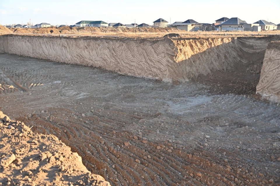 В Сузакском районе, в селе Кашка-Терек, активно идет строительство новой образовательной...