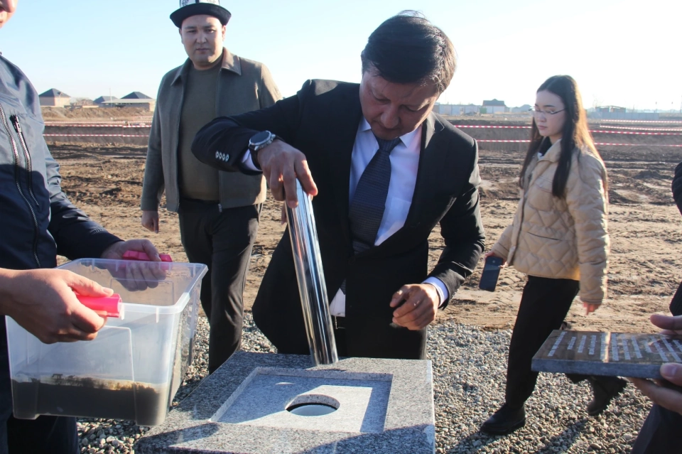 Капсулу для фундамента заложил заместитель председателя ГКНБ Курванбек Авазов.