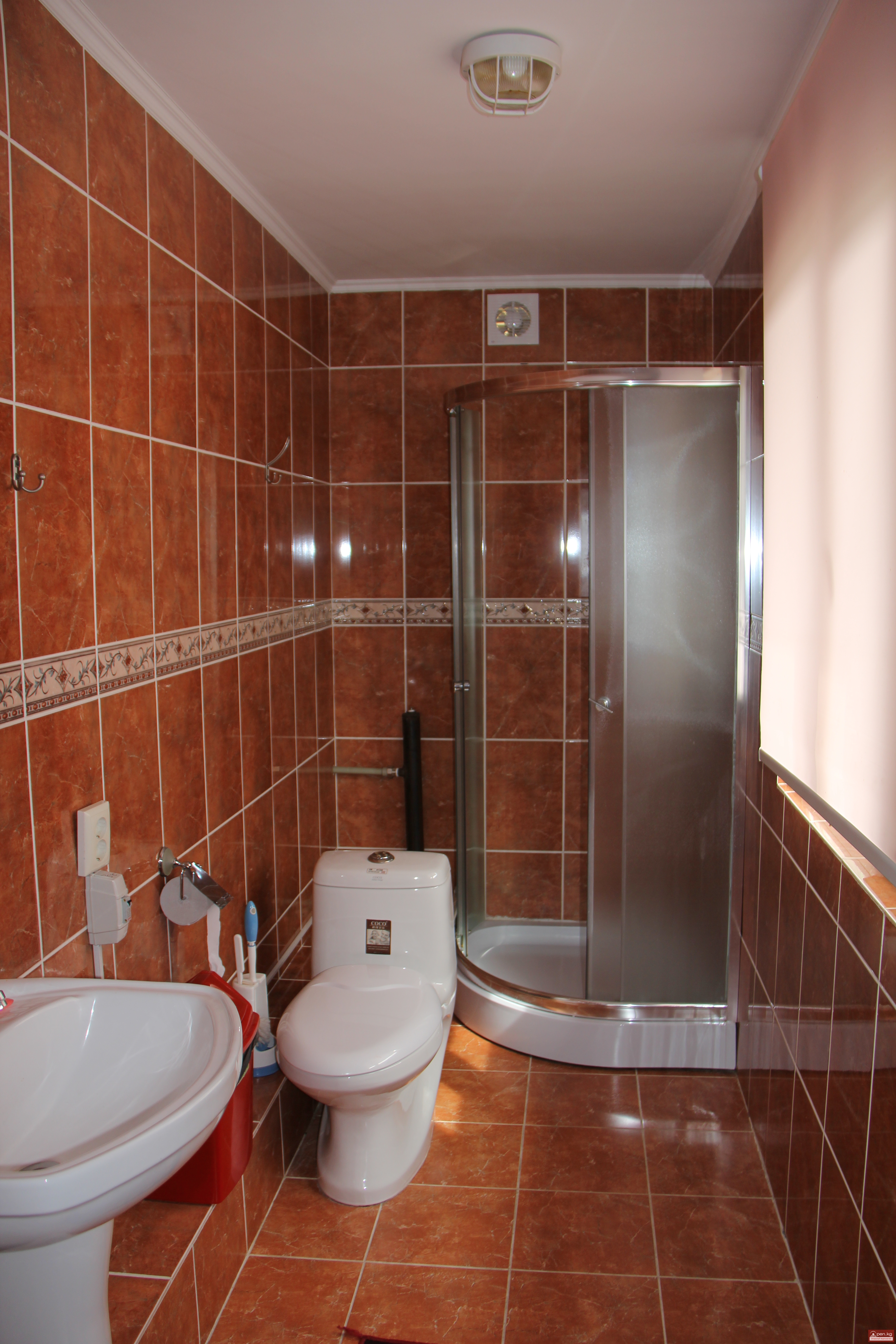 Второй этаж состоит из трех двухместных номеров. В 1 и 2 номерах имеются дополнительные раскладные диваны, по этому при желании там комфортно могут расположиться 8 отдыхающих. На этаже также расположет санузел с душевой кабиной и с теплым полом. Отопление автономное, номера очень теплые, горячая и холодная вода в достаточном количестве. Дом каркасного типа и построен по канадской технологии, поэтому очень теплый и сейсмостойкий.