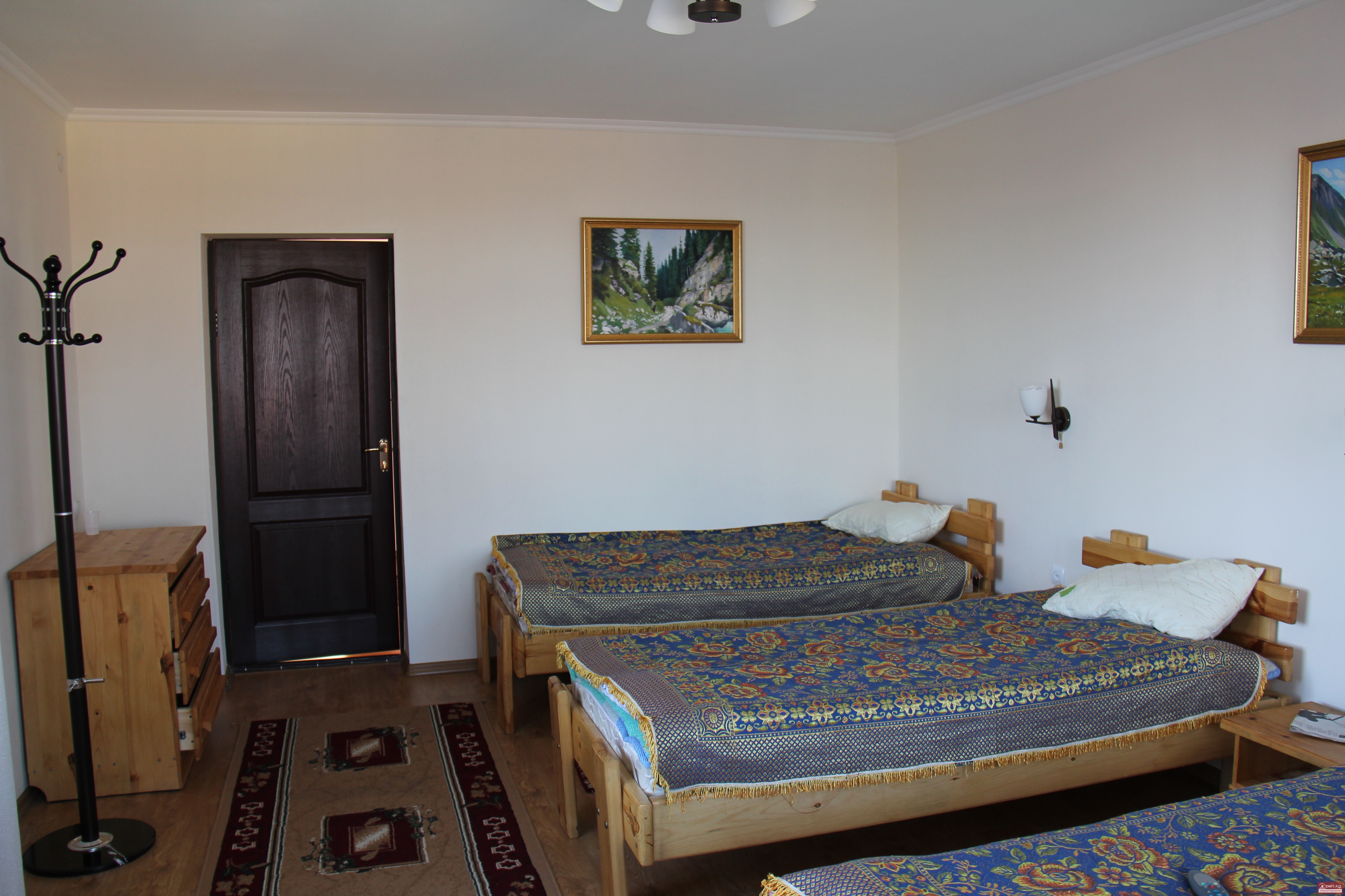 Дом по всему периметру облицован полиуретановыми плитами, толщиной 5 см., которое сохраняет тепло по принципу “термоса”, поэтому он теплый, уютный и комфортный. С номеров второго этажа Вы можете наслаждаться красотой Тянь-Шаньских гор .