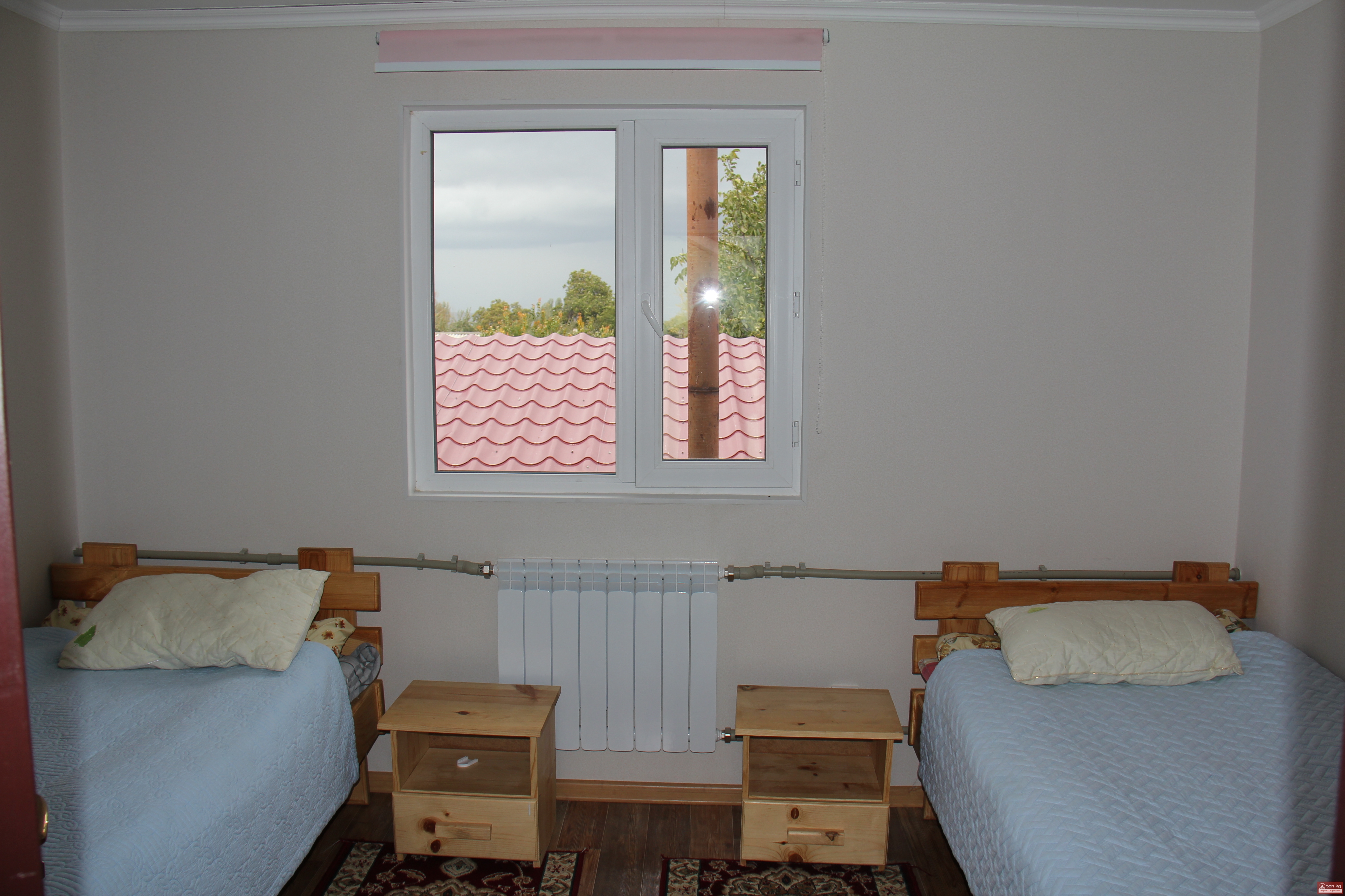 При строительстве дома были применены только экологически чистые материалы местного производства – дерево, белая известь, мытый песок и никакой химии. Дом очень светлый и теплый.В нем может расположиться компания из 10 человек в 2-х двухместных и 2-х трехместных номерах. При желании имеются два раздвижных дивана. Большой холл с деревянными скамейками и большим столом располагает к непринужденной беседе под треск горящих поленьев в печке.