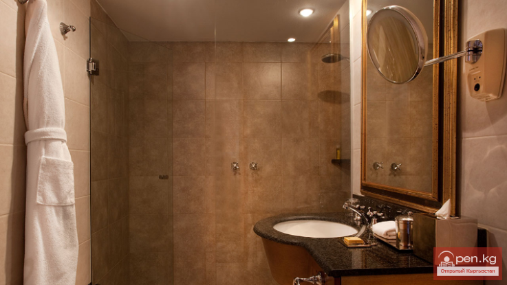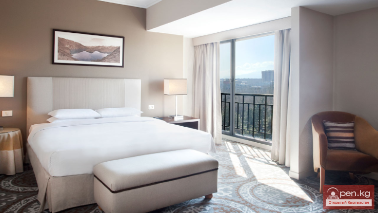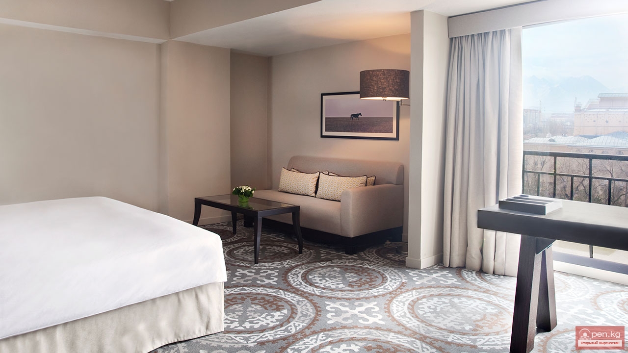 Для комнат на южной стороне отеля открывается прекрасный вид на горы Ала-Тоо и здание Театра Оперы и Балета. Дневной свет в комнатах особенно подчеркивает тонкости современного городского декора с применением дуба и богатой текстуры. Просторная комната этой категории, размером 48 кв. метров, предлагает отдельное место для отдыха, эргономичное рабочее место с высокоскоростным Интернетом, а также кровать королевского размера с итальянским постельным бельем из 100% хлопка и подушками на гусином пуху. Паровая ванная комната со стеклянными стенами вокруг ванной и душа оснащена сушилками для полотенец.