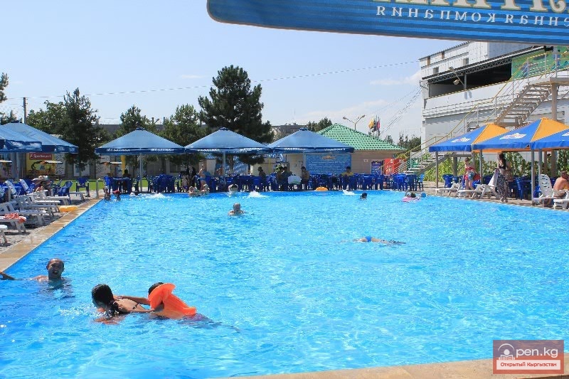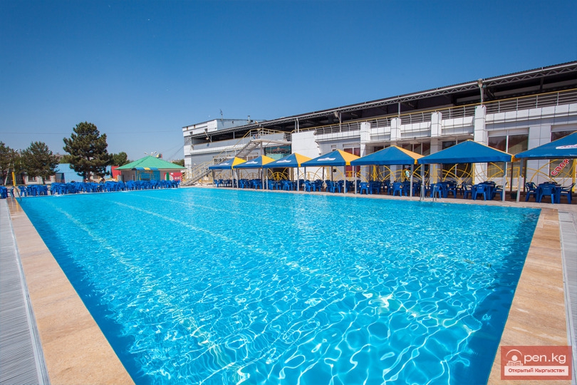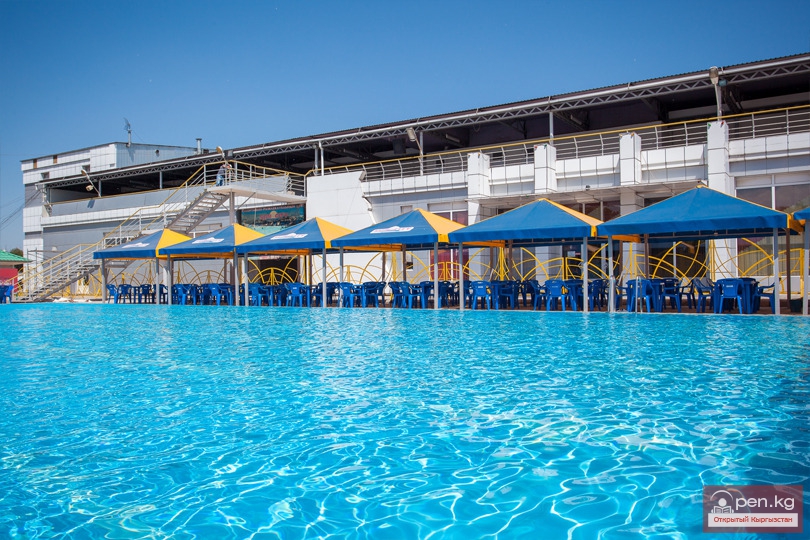 Расслабьтесь в открытом бассейне гостиницы Бишкека «Хаят» в жаркие летние месяцы, с конца мая до...