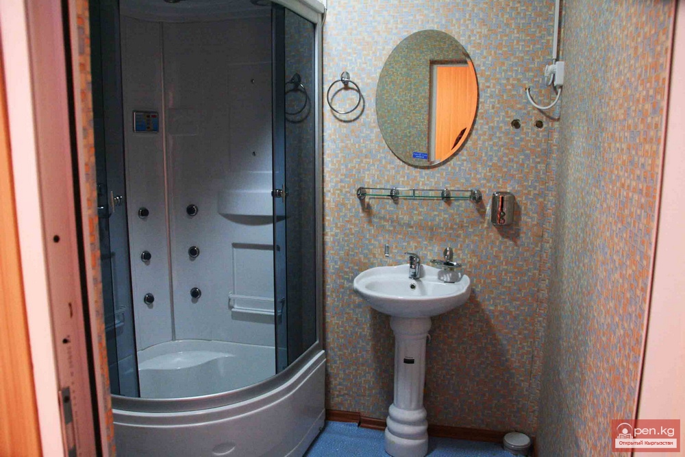 4 деревянных домика (по 4 комнаты в каждом, 16 комнат, на 64 человека);
