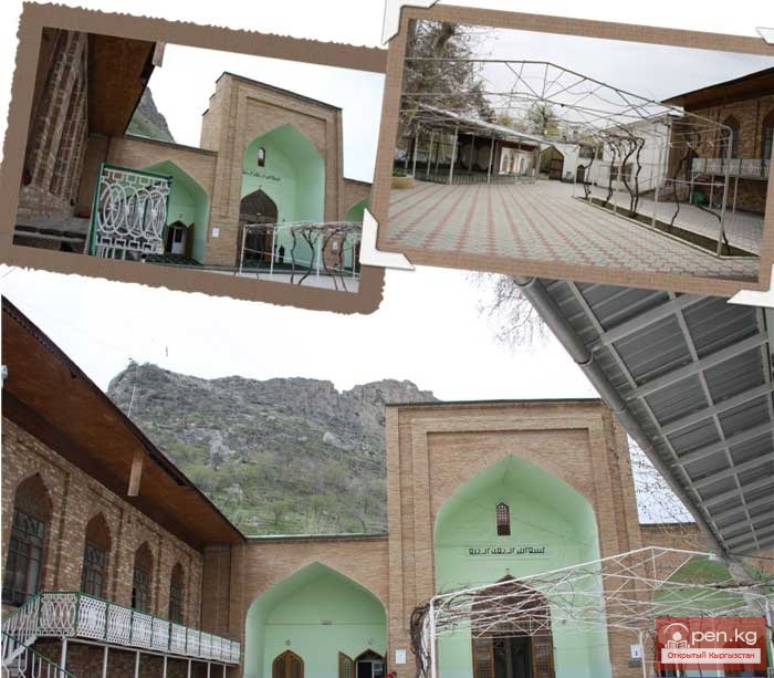 Двор, вымощенный перед мечетью жженым кирпичом, был обнесен невысокой стеной (дувалом). Главный вход с улицы Алебастровой во внутренний двор был оформлен в виде двухэтажного проходного портально-купольного сооружения с деревянными воротами. Второй этаж этого сооружения составляли небольшие худжры-кельи для учащихся. Несколько худжр было и в южной части внутреннего двора, объемно-пространственная планировка которого представляла собой замкнутое сооружение. Минарет, расположенный во внутреннем дворе, был сложен из жженого кирпича лицевой кладкой. Высота минарета составляла 10-12 метров. Основание минарета - восьмигранный цоколь. Минарет был круглоствольный, двухзвенный, сужающийся кверху и завершающийся «павильоном-фонарем» с купольным навершием из кровельного листового железа. К этому небольшому павильону вела винтовая лестница, заключенная внутри минарета. По лестнице поднимались муэдзины, призывающие мусульман к молитве.